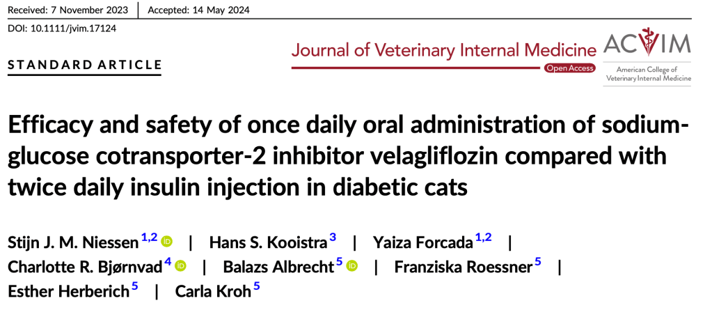 “Efficacy and safety of once daily oral administration of sodium-glucose cotransporter-2 inhibitor velagliflozin compared to twice daily insulin injection in diabetic cats”
